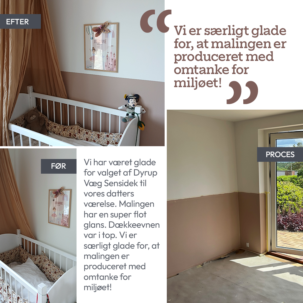 Hos Dyrup er vi stolte af vores kvalitetsmalinger og vi har derfor sat tilfældige udvalgte danske familier til at teste vores maling, for at høre om de deler vores opfattelse af vores produkter. Her på siden kan du læse hvad testfamilierne synes om den biobaserede vægmaling Dyrup Sensidek.