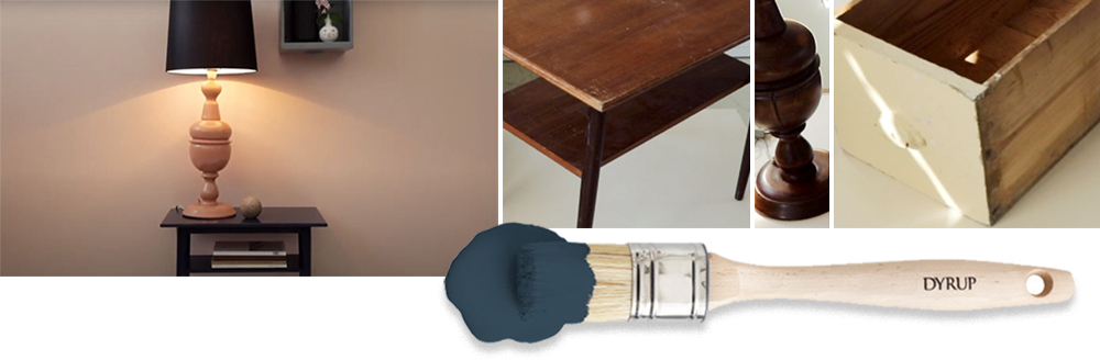 Nedenfor kan du finde inspiration til maling af møbler. Vi har malet en bakke med farven Dressing Room og et lille natbord i farven Violet Whimsey. Med farverne opnås et helt nyt udtryk, og på den måde gives nyt og mere morderne liv til møbler og pyntegenstande.