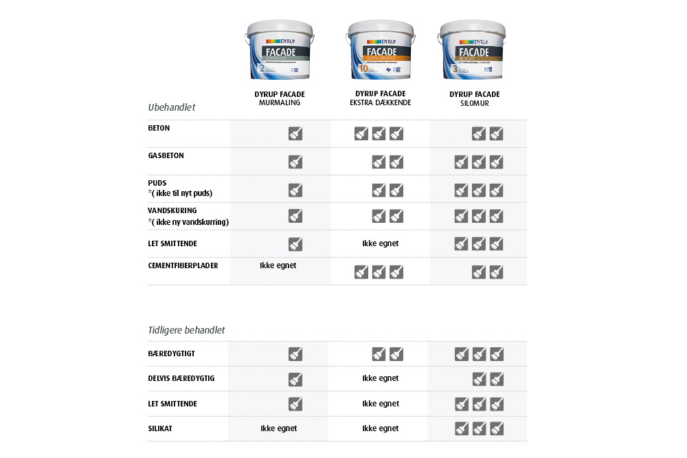 I facadebrochuren kan du læse mere om de forskellige facademalinger.