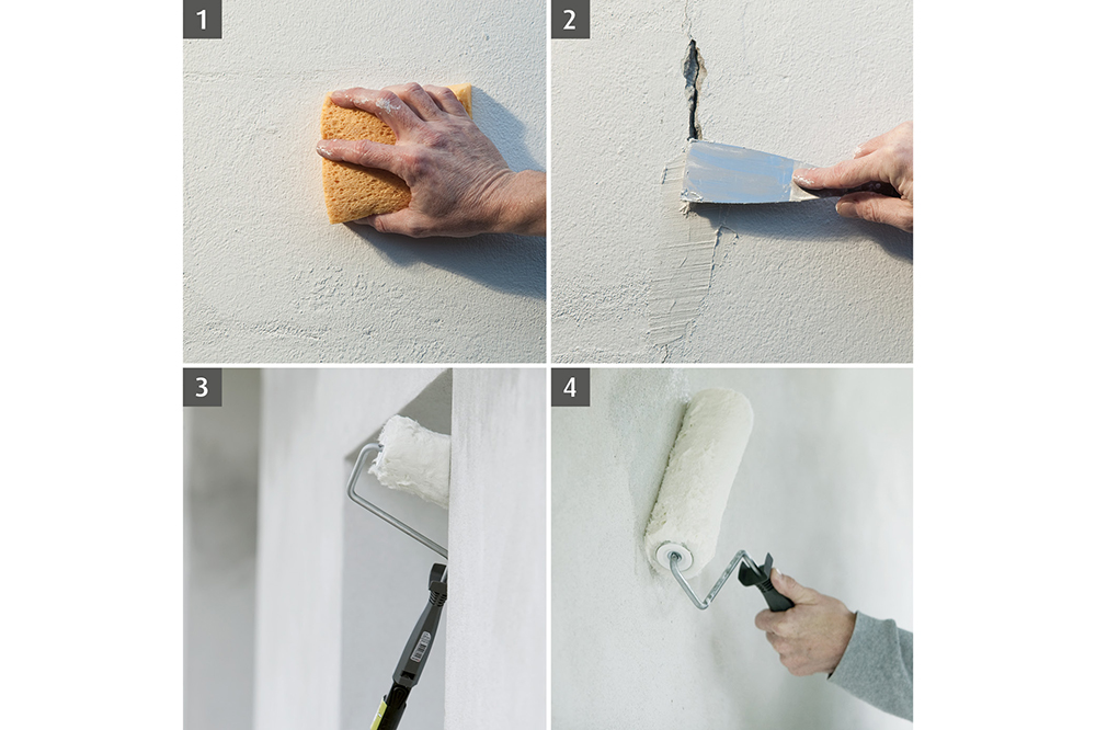 Når facaden er ren og tør skal eventuelle revner og huller i facaden repareres, ligesom løs puds skal fjernes. Slutteligt skal du dække godt af ved vinduer, døre, trapper og fliser. Nu er du klar til maling af din facade.