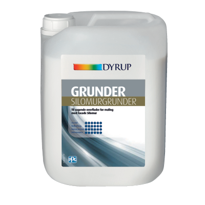 Dyrup Silomur Grunder er en udendørsgrunder til mineralske overflader, som fx puds, vandskuring, kalksandstensoverflader og tidligere malede overflader. Denne grunder mætter og sikrer et ensartet sugende underlag, før man viderebehandler med Dyrup Facade Silomur maling. Produktet er diffusionsåben og CO2-åben. Denne grunder må kun anvendes på facader med blødstrøgne og frostbestandige sten og på udfyldte fuger uden revnedannelser.
